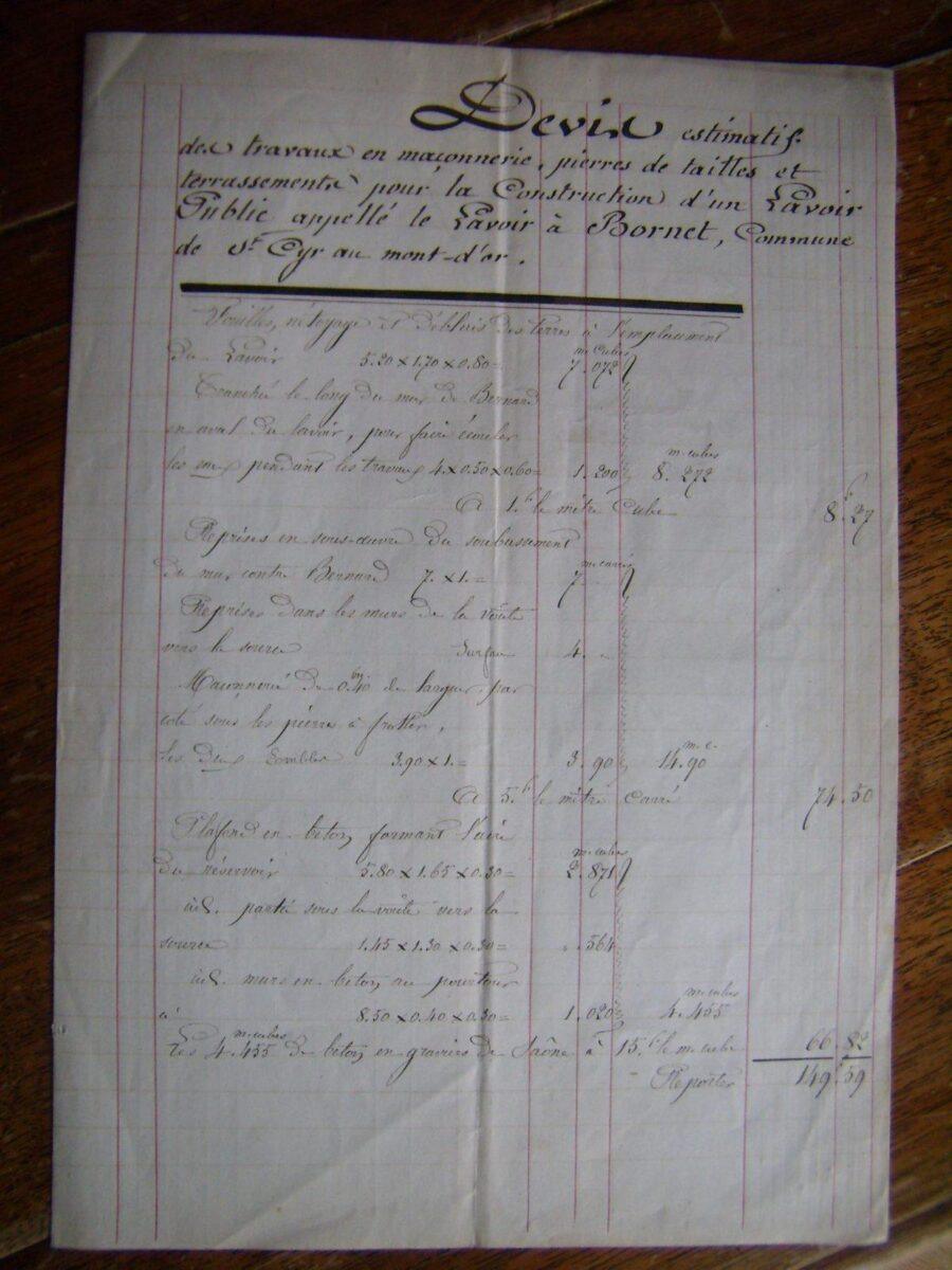 Un devis estimatif est produit pour la construction du lavoir à Bornet (non daté)