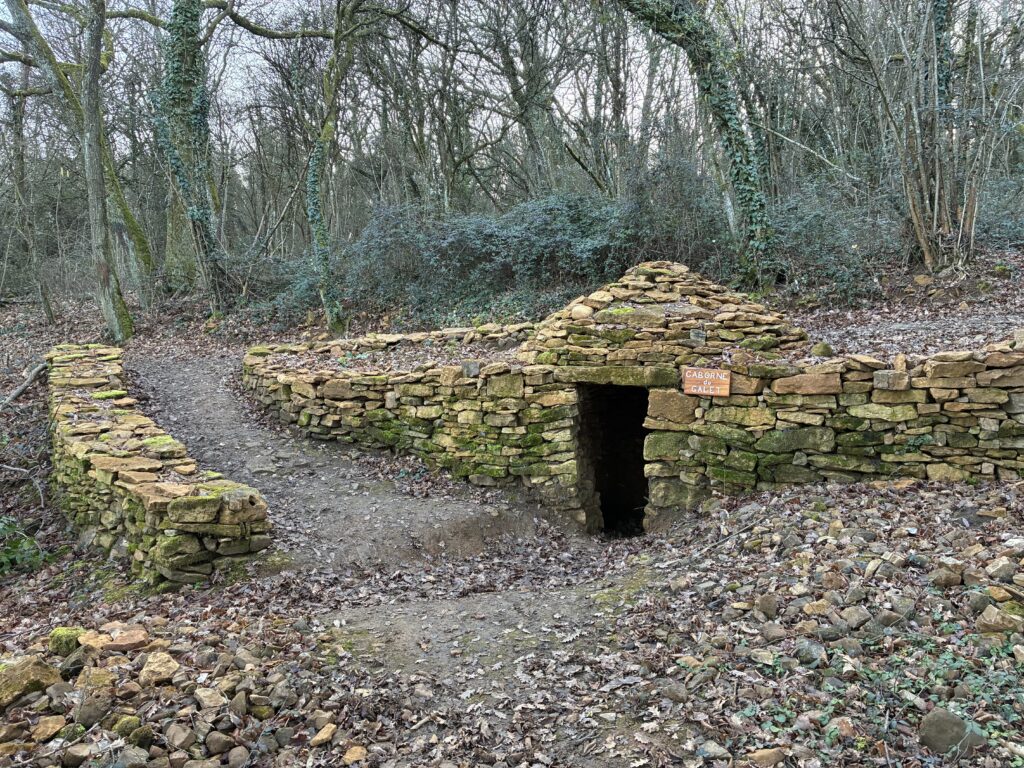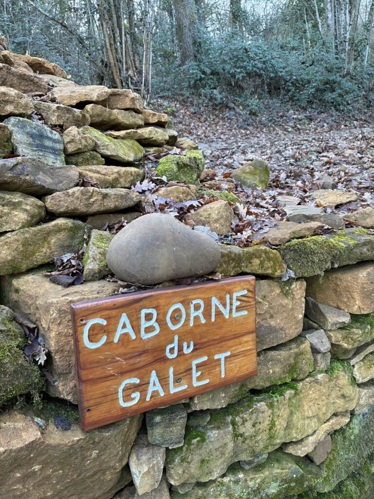 Cette caborne découverte par hasard lors de la rénovation en 2025 du chemin de la Roche à la Jardinière doit son nom à la présence insolite de ce beau galet retrouvé au milieu des pierres calcaires des ruines de la caborne.