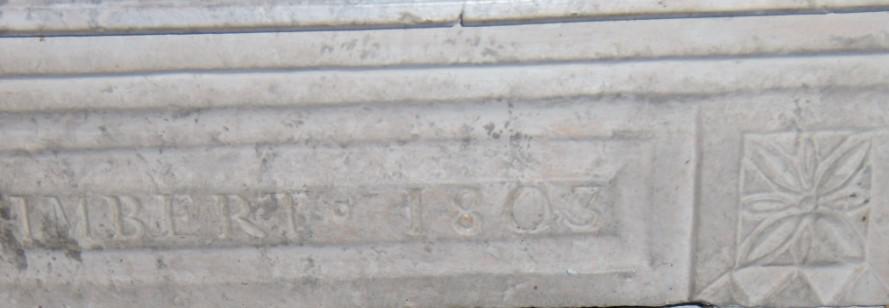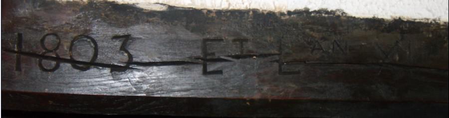 Signature sur cheminée – « Imbert 1803 » Sur le four à pain « J.L. IMBER 1803 Et L’an XI » :