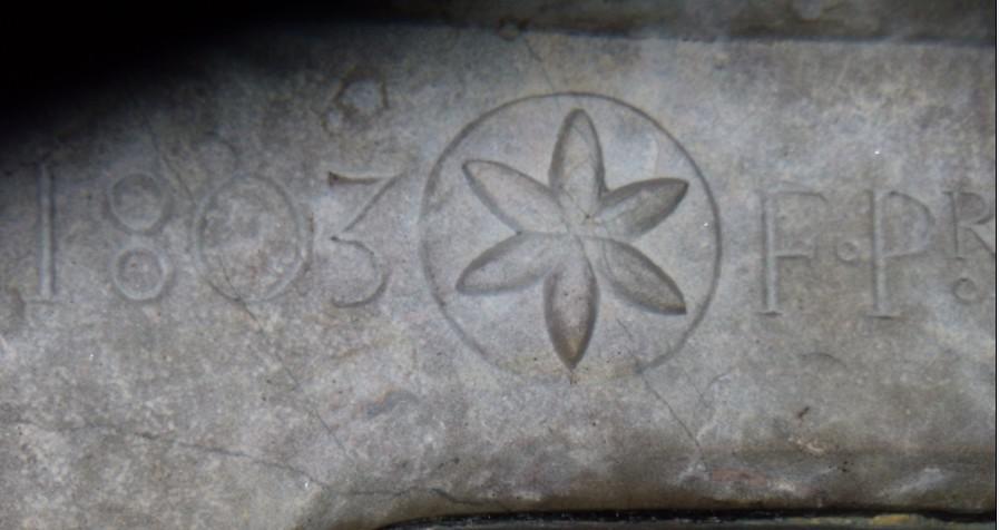 Signature sur cheminée : « 1803 * F.P.R. » (Fait par)