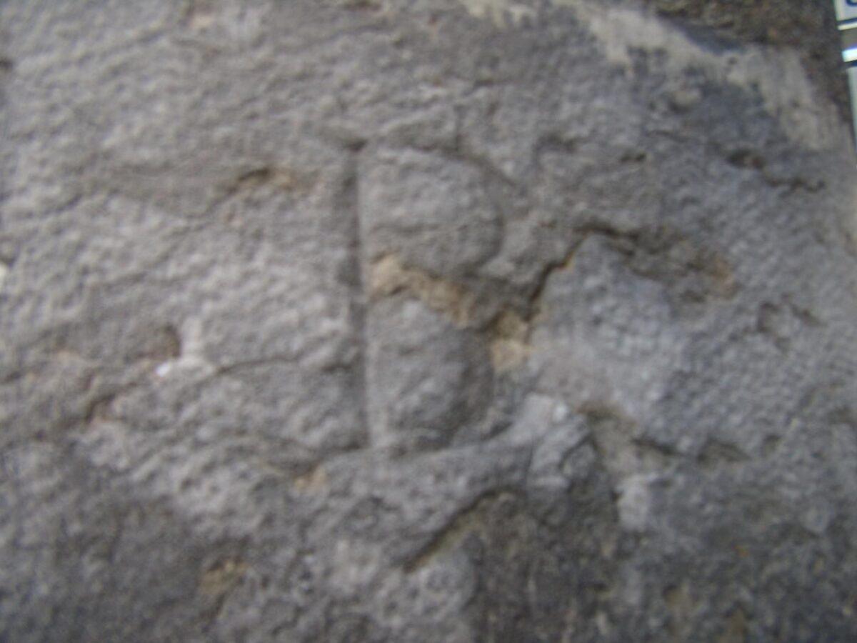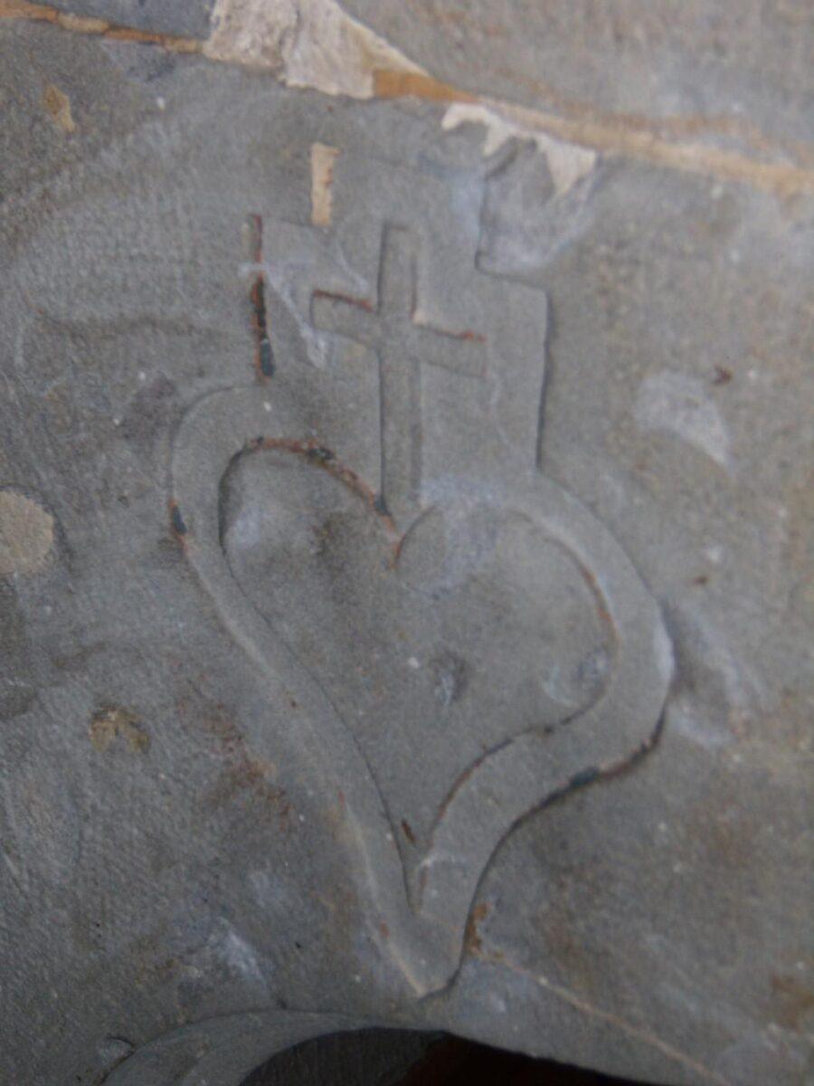 – Un coeur surmonté d’une croix, côté gauche, ( symbole du sacré-coeur, dévotion au Cœur de Jésus-Christ )