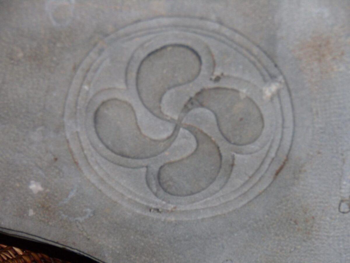 – Un tétraskèle côté droit, (symbole de la roue et du cycle solaire) :